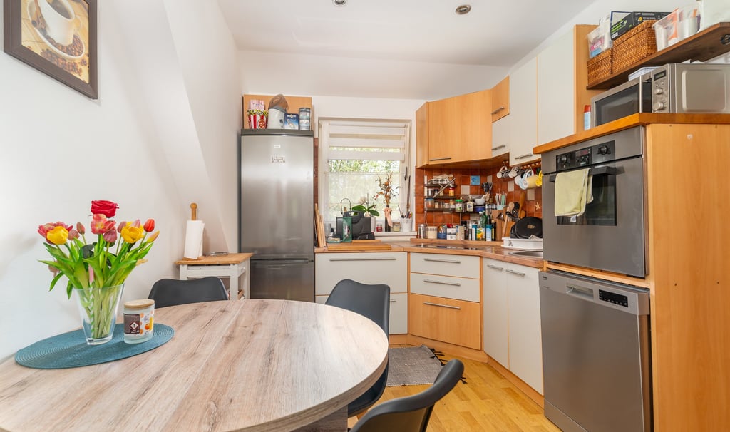 Na odlični lokaciji, v mirni ulici z vsemi pomembnimi storitvami v neposredni bližini, vam predstavljamo prijetno mansardno stanovanje s skupno neto površino 73 m², od tega 53 m² uporabne površine, 3 m² shrambe ter 17 m² prostorne kleti.
